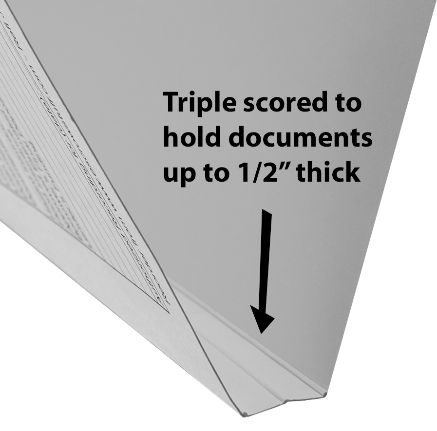 Triple scored spine expands to holds up to 1/2“ stack of documents.